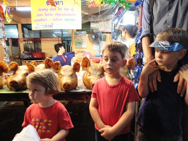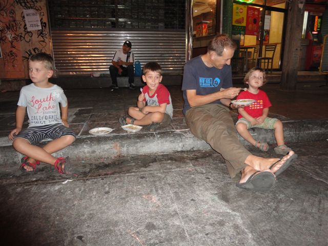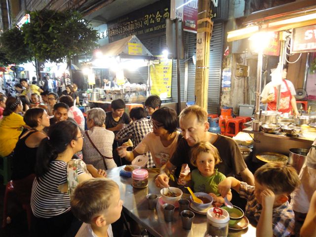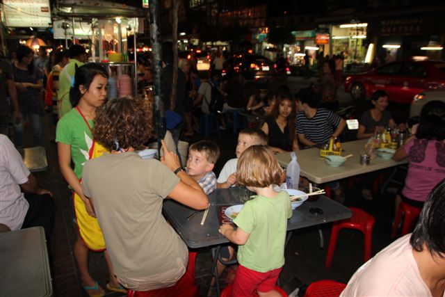 Auch ist Bangkok nicht wirklich langweilig. Gerade die schlechten Englischkenntnisse der Thais machen viele Dinge besonders interessant. Mit Händen und Füssen das richtige Essen inkl. Kindersonderwünsche am Straßenrand in China Town zu bestellen.Bild 156