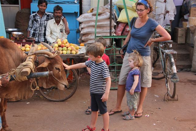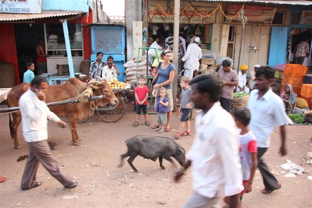 Das so enorm spannende Alltagsleben in Indien kostet zwar immer wieder ein paar unserer Energiekörner, aber macht das Reisen gerade für die Kinder nie langweilig.Dort klauen Affen eine Chipstüte, hier laufen Schweine und Kühe die Straße entlang